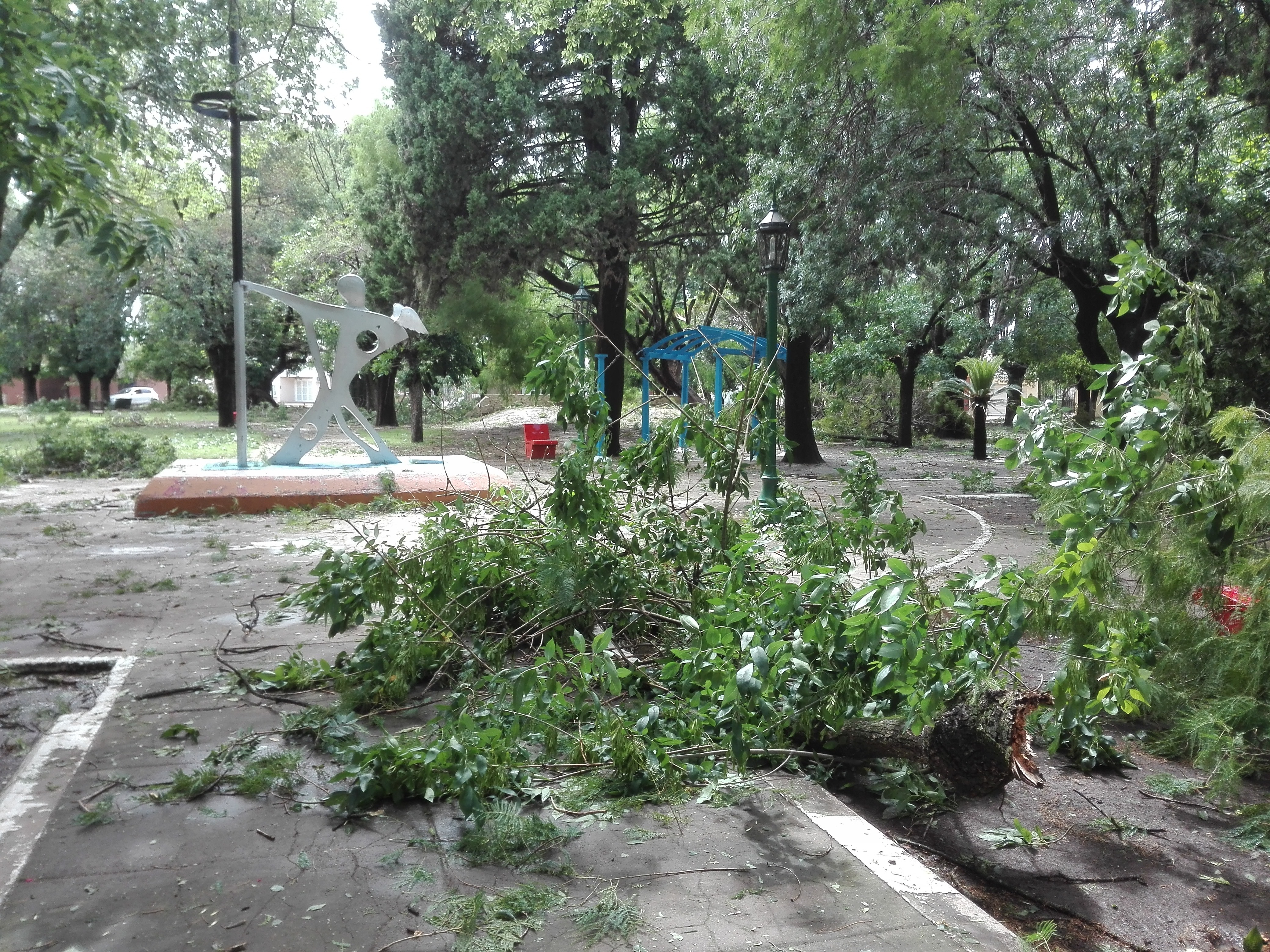 En la plaza Belgrano de Villa Ramallo destrozó gran parte de los arboles