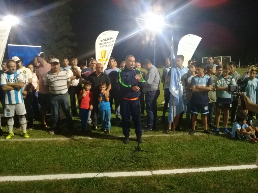 El torneo nacional de veteranos generó una gran expectativa, también la presencia de los ex futbolistas de Racing, que estuvieron acompañando a “Camote” Acuña, el “Turco” García, Medina Bello, Principiano, Viqueira, Chacoma, Olarán, Bezombe, Larrachado, entre otros y el condimento extra fue que después de muchos años, el polideportivo municipal tiene iluminación artificial. Alrededor de las 21:00 horas, hicieron su ingreso al campo de juego, el Intendente Municipal, Mauro Poletti e integrantes de su gabinete, el subsecretario de Deportes Marcelo Verón, los veteranos de Racing, y representantes –dirigentes y deportistas de las distintas actividades- de los clubes, Social, Matienzo y los Andes, club donde se inició “Camote” Acuña. Hubo plaquetas recordatorias de la Municipalidad y Los Andes para Acuña, de la Municipalidad para el “Turco” Martín, futbolista local que fue homenajeado poniéndole su con su nombre al torneo Apertura de la Liga Nicoleña, una plaqueta de parte de la liga, que el presidente Gustavo Ouakim le entregó al intendente y otra de los hinchas de la academia en Ramallo para el plantel racinguista. Se dirigieron a los presentes el Intendente Muro Poletti, haciendo hincapié en la importancia del deporte, tan importante, señaló Poletti, como la educación y la salud para toda la comunidad sin límite de edad, luego Acuña agradeció emocionado, este reconocimiento. Antes y después hubo partidos por el torneo de veteranos con equipos locales y otros provenientes, de Chaco, Tucumán, Bahía Blanca, Paraguay y Uruguay, entre otros lugares de nuestro país y el exterior. El torneo continuó sábado y domingo en el camping de la UOM, a la vera de la autopista.