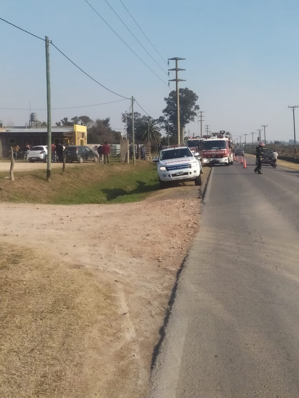 En estos momentos se combate un incendio de pastizales en ruta nacional 9 zona de banquina.
