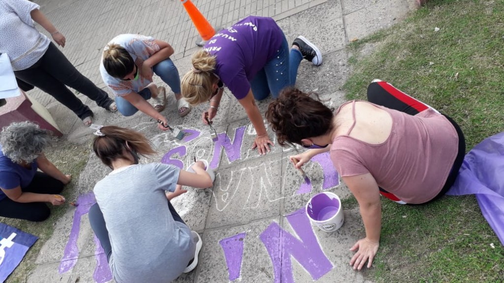 Este martes se realizó una intervención plástica en la municipalidad desde La Casa De La Mujer y La Diversidad con la intención de repudiar la violencia contra las mujeres.