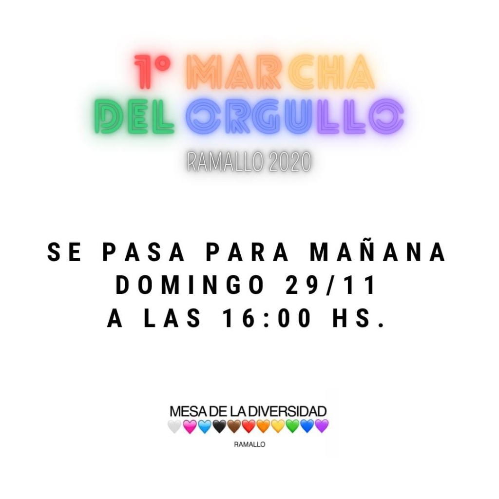 Conscientes del contexto de pandemia y la fase DISPO que atravesamos, este año celebramos nuestra Primera Marcha del Orgullo y la modalidad será una “concentración” con distanciamiento, siendo respetuosos de las medidas sanitarias: