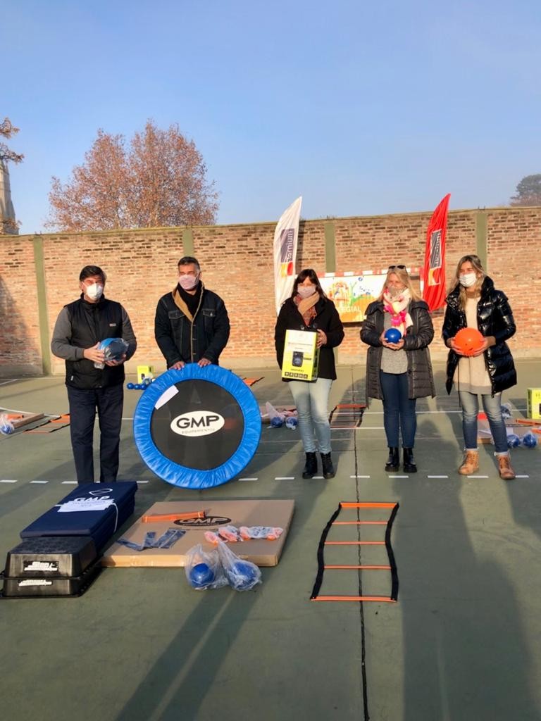 Esta mañana se realizó la entrega de distintos materiales didáctico-deportivos para todas las escuelas secundarias del partido, en el marco de una nueva edición de los Torneos Intercolegiales organizados por el CEF n°60 y auspiciados por Ternium. Estuvieron presentes el intendente Gustavo Perié, acompañado de la Dirección de Deportes del Municipio; Fernando Favaro, Gerente de Desarrollo Social, Relaciones Institucionales y Salud Ocupacional de Ternium; la directora del Centro, Viviana Scabini; la inspectora distrital de Ramallo, Alejandra Signo; y el inspector de Educación Física, Lucas Salvatore.