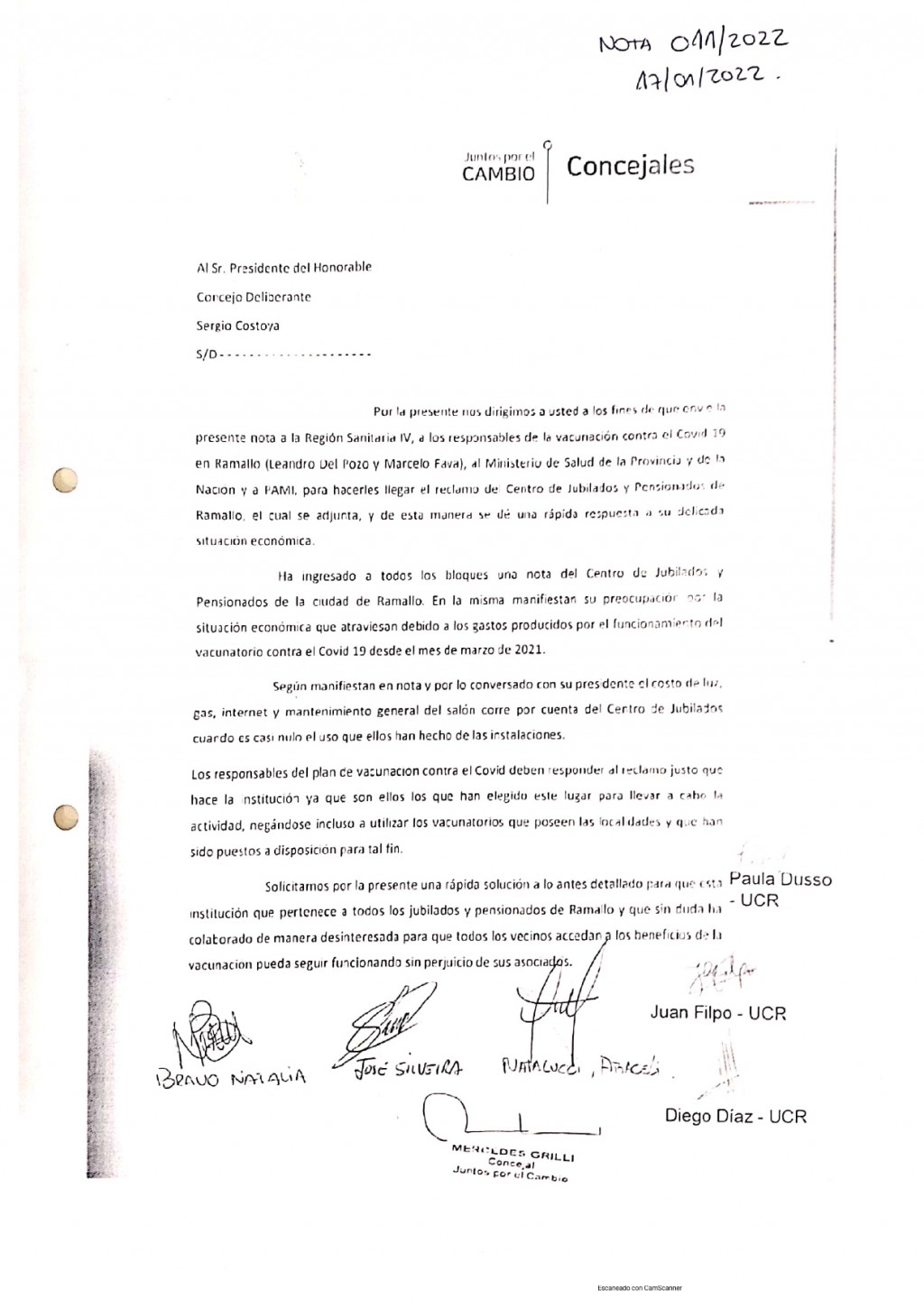 En las últimas horas desde el bloque de Concejales de Juntos y con la firma de los ediles del bloque de la Unión Cívica Radical, manifestaron su pedido en las redes sociales solicitando la rápida intervención y solución frente a lo que informaron desde el Centro de Jubilados y Pensionados de la ciudad de Ramallo.