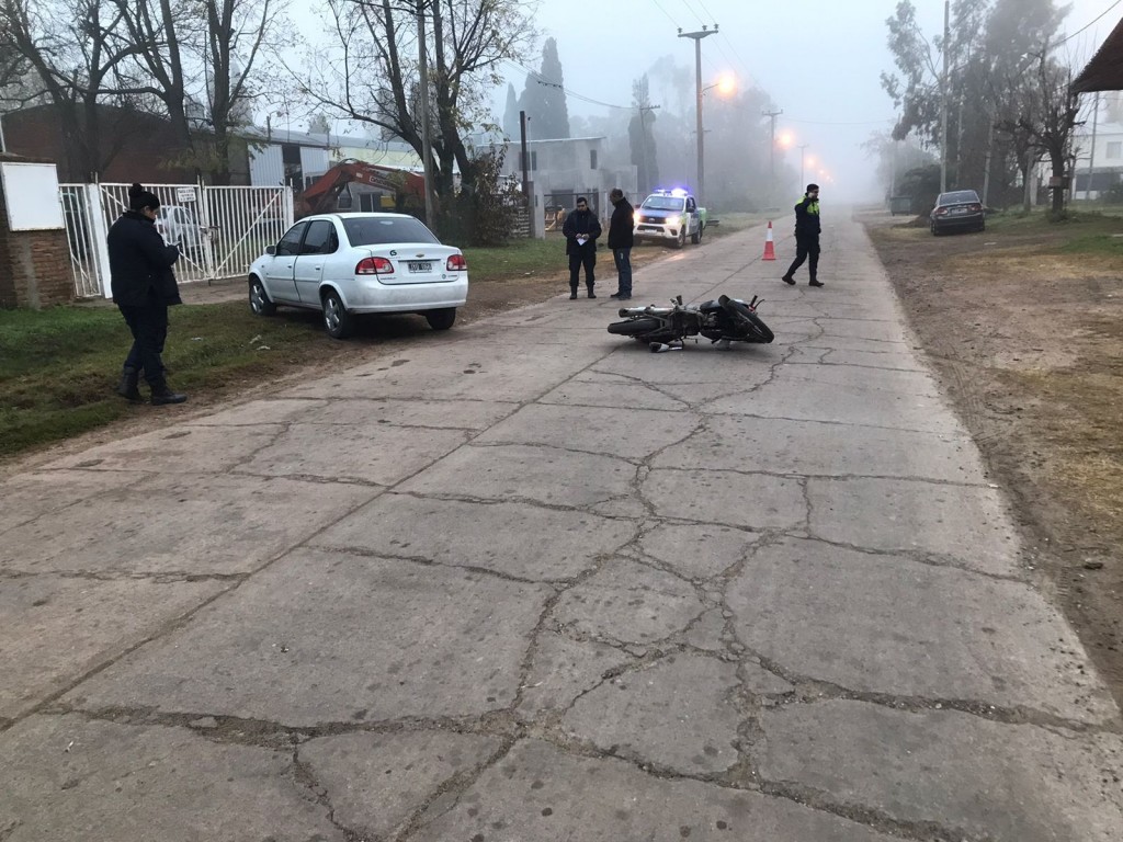 A las 08:20hs. en intersección de avenida Dusso y Velázquez –camino al cementerio local—una motocicleta marca: Corven, dominio: 159INN, conducido por un hombre de 36 años colisionó contra un automóvil marca chevrolet Corsa dominio JYO066 conducido un hombre de 55 años, ambos oriundo de Villa Ramallo.
